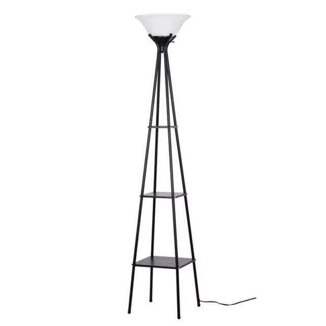 69″ Charcoal Metal Floor Lamp with Built-In Shelves for Home Decor