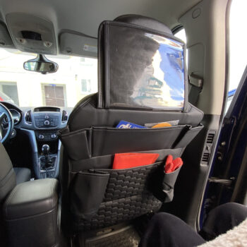 With eight pockets, this organizer keeps snacks, drinks, toys, and books within easy reach. A separate pocket for tablets and phones is specifically designed for touch-friendly use, so kids can watch cartoons while you enjoy the peace and quiet.