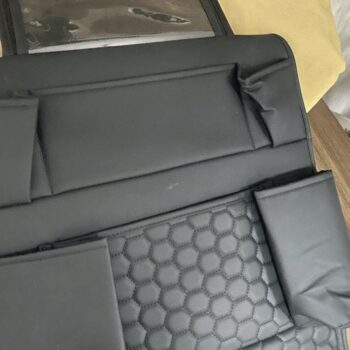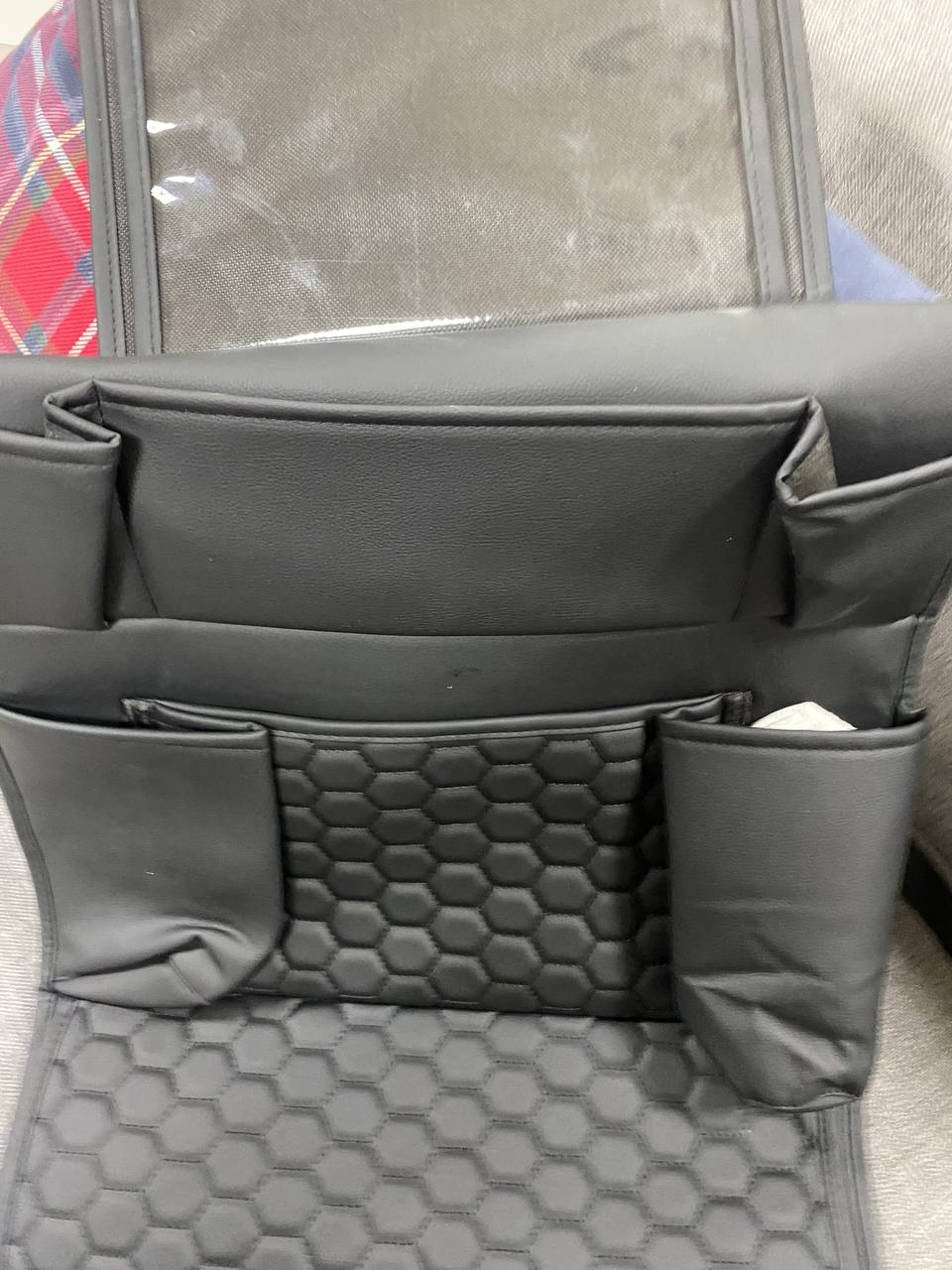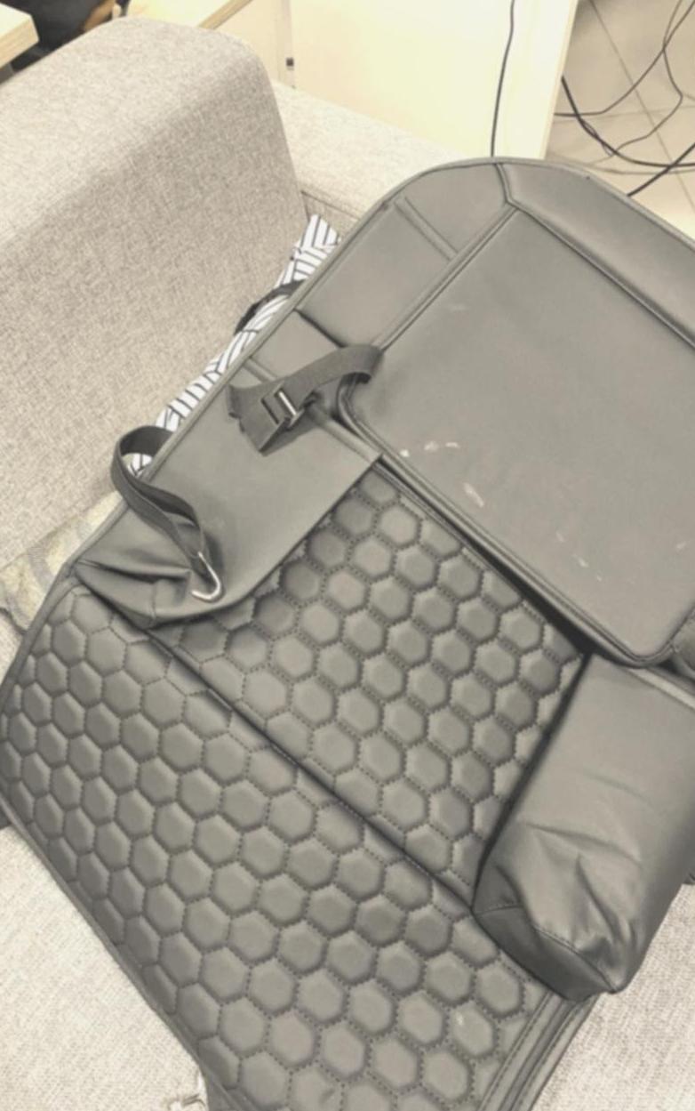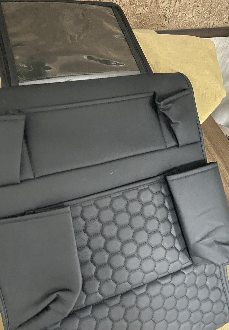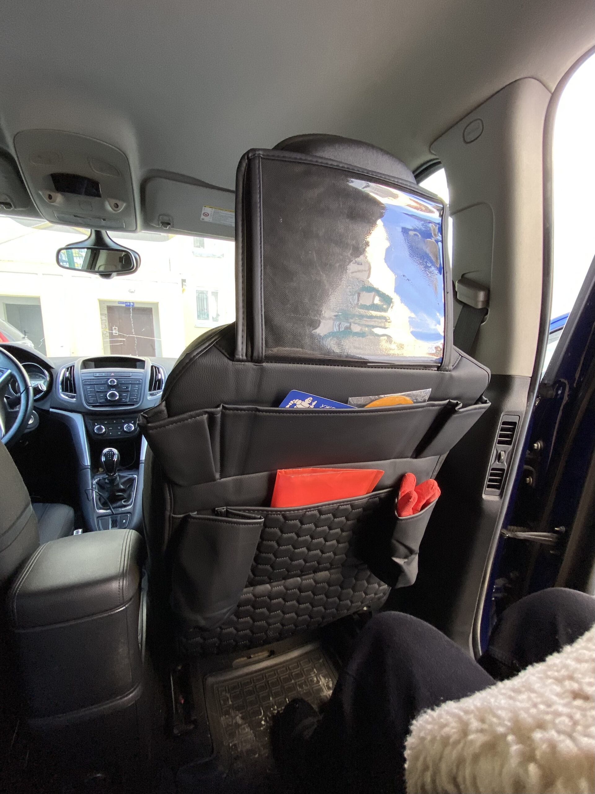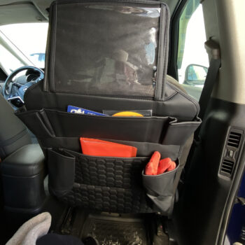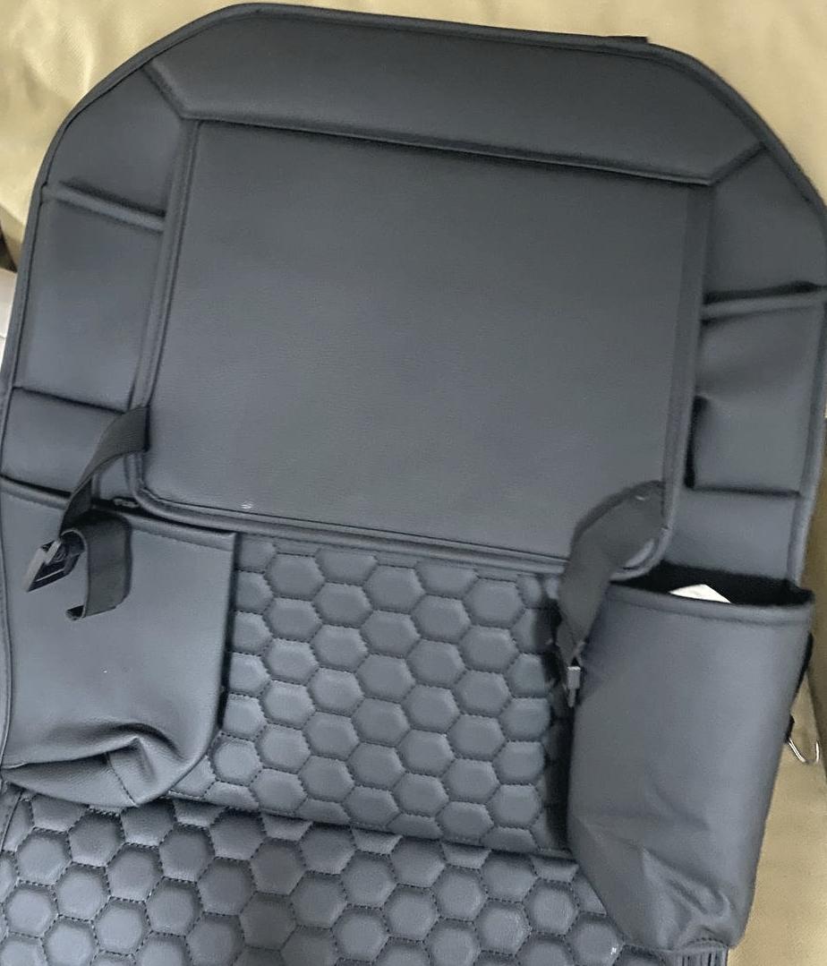 Crafted from eco-leather, this seat back organizer is waterproof and easy to clean with a damp cloth. The clear TPU pocket is also waterproof and safe for babies. All materials used are vegan and non-toxic.