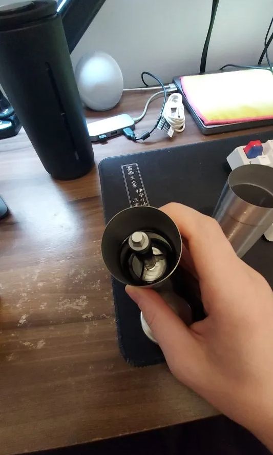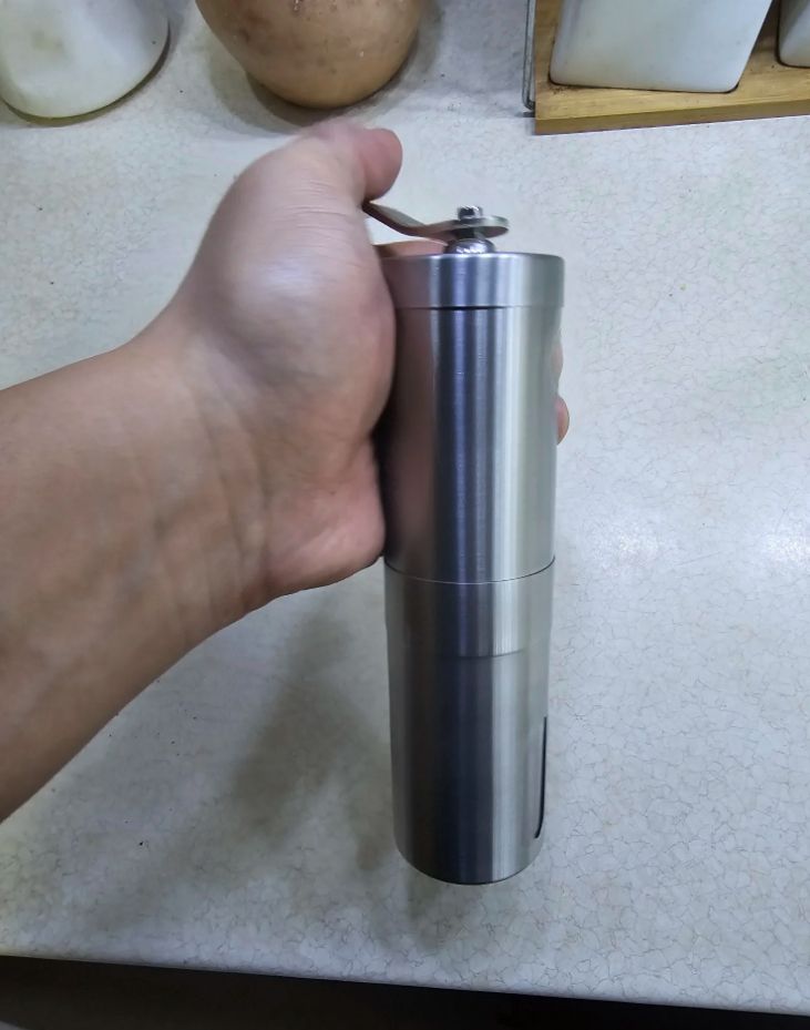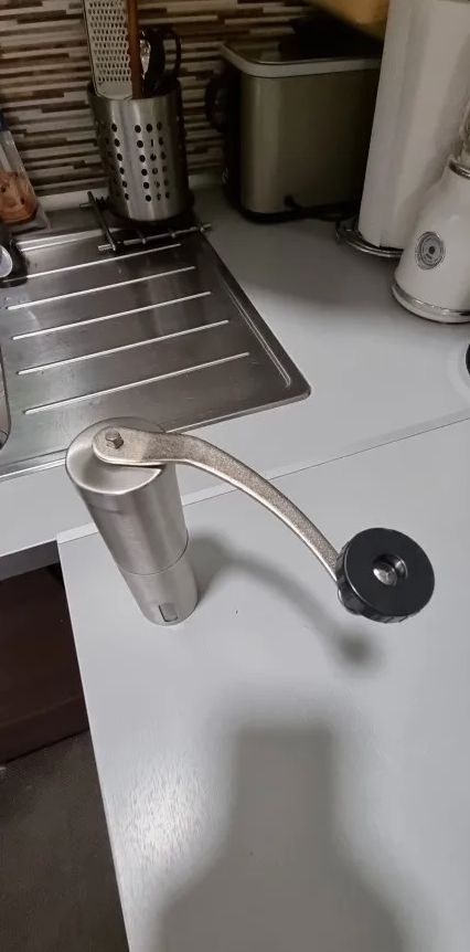 One thing to be cautious of is that the crank handle simply rests on the post, so it requires careful handling. Additionally, it's a bit small and not the easiest to clean. However, if you find yourself without power and in need of grinding coffee beans, this grinder is your go-to solution.