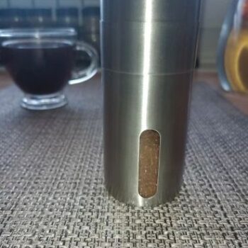 With its beautiful stainless steel construction, this grinder is a handy item for camping trips.