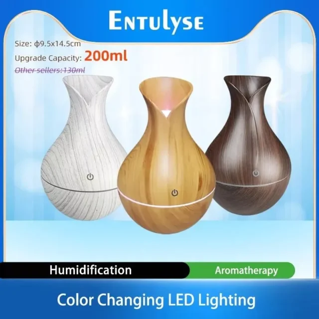 Transform your personal space into a haven of relaxation and freshness with our Ultrasonic Aromatherapy Diffuser & Air Humidifier. Designed to fit effortlessly into your car, home, or office, this compact device is your ally in creating a serene, inviting atmosphere wherever you are. Its sleek, wood-like design harmonizes with any decor, adding a touch of elegance to your surroundings.