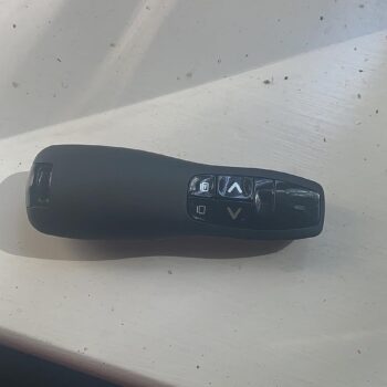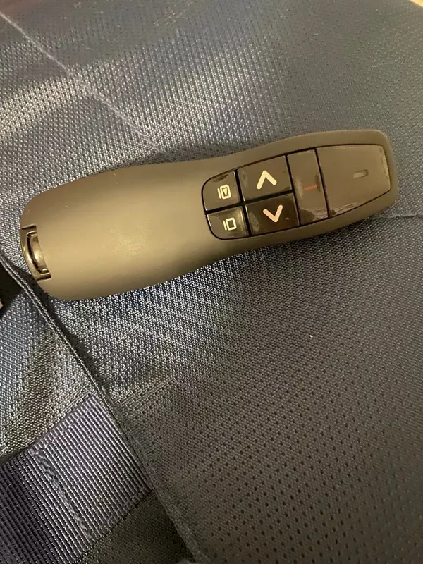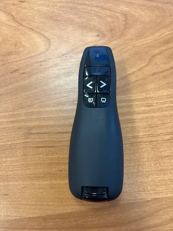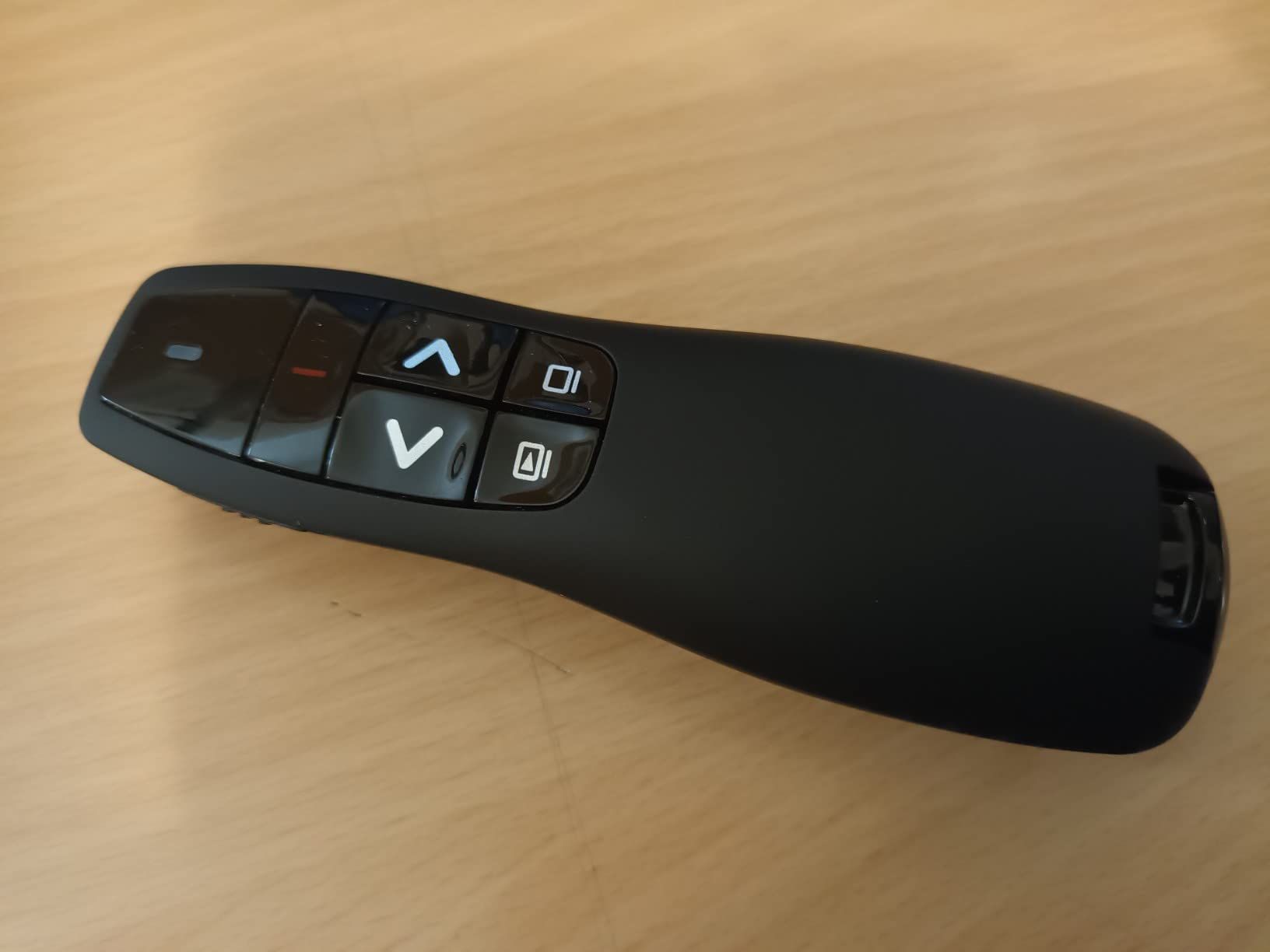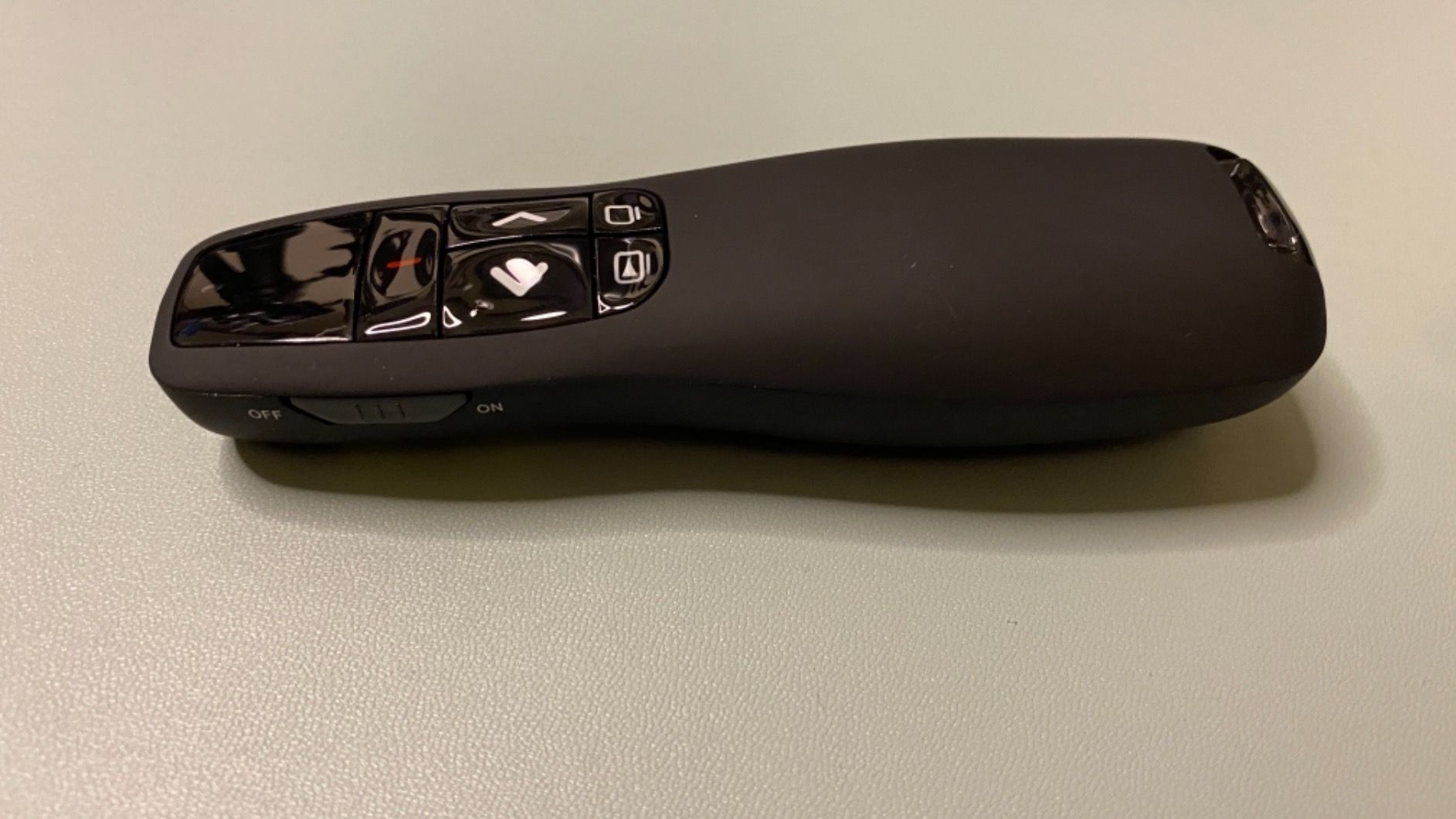 Feels good in hand, easy to hold, and does everything you need - moving slides, laser pointing, and even blacking out the screen when needed!