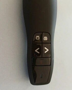 The laser pointer, screen blackout, and PowerPoint advancement features are great. The only downside is that the buttons are close together, so I have to look first to make sure I'm pressing the right one. Might get easier with more use.