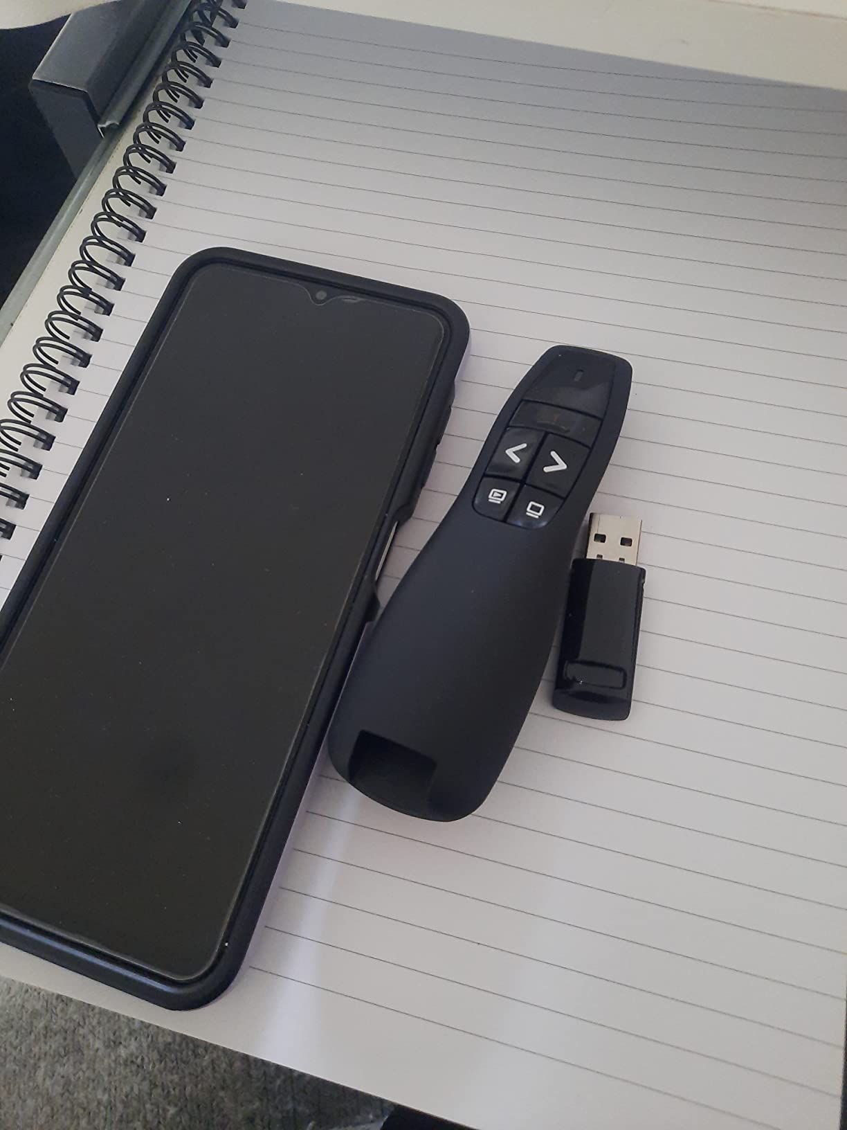 This is so easy to use and comfortable to hold, especially during long presentations. The laser pointer works great from a good distance, and the blank page feature is perfect for pausing.
