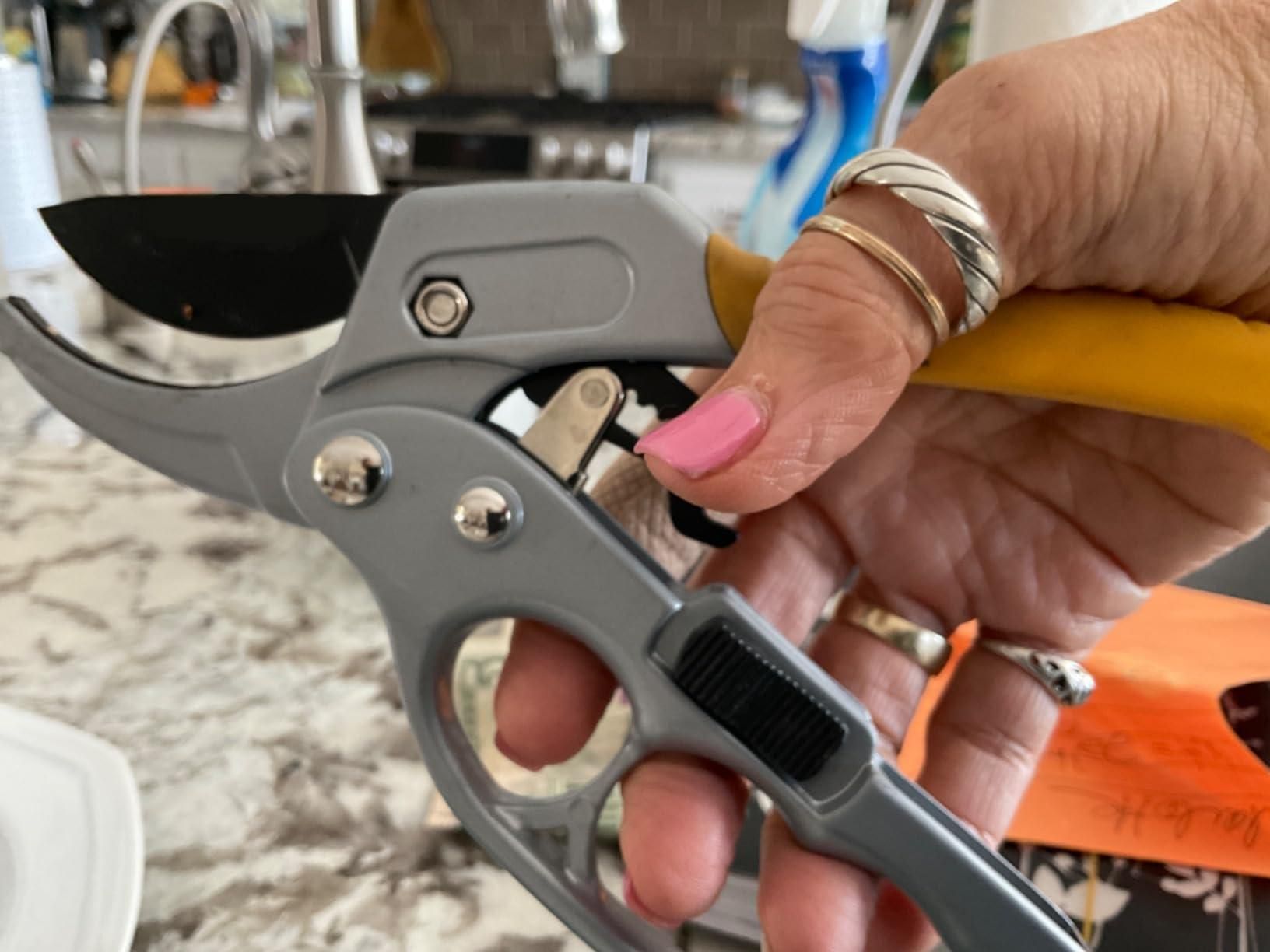 As an apartment renter with arthritis, these shears were effective for trimming vines near my parking area, though their length limited reach for higher areas. The locking clip, designed with two sides, posed some difficulty due to my arthritis, but the handle itself was notably comfortable.