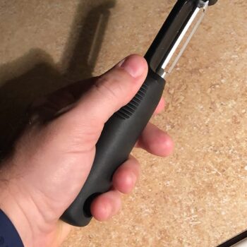 I have a chronic illness that makes holding things difficult due to hand spasms. The grip on this peeler is sturdy and easy to hold, which made it effortless to use. I highly recommend this to anyone with hand issues.