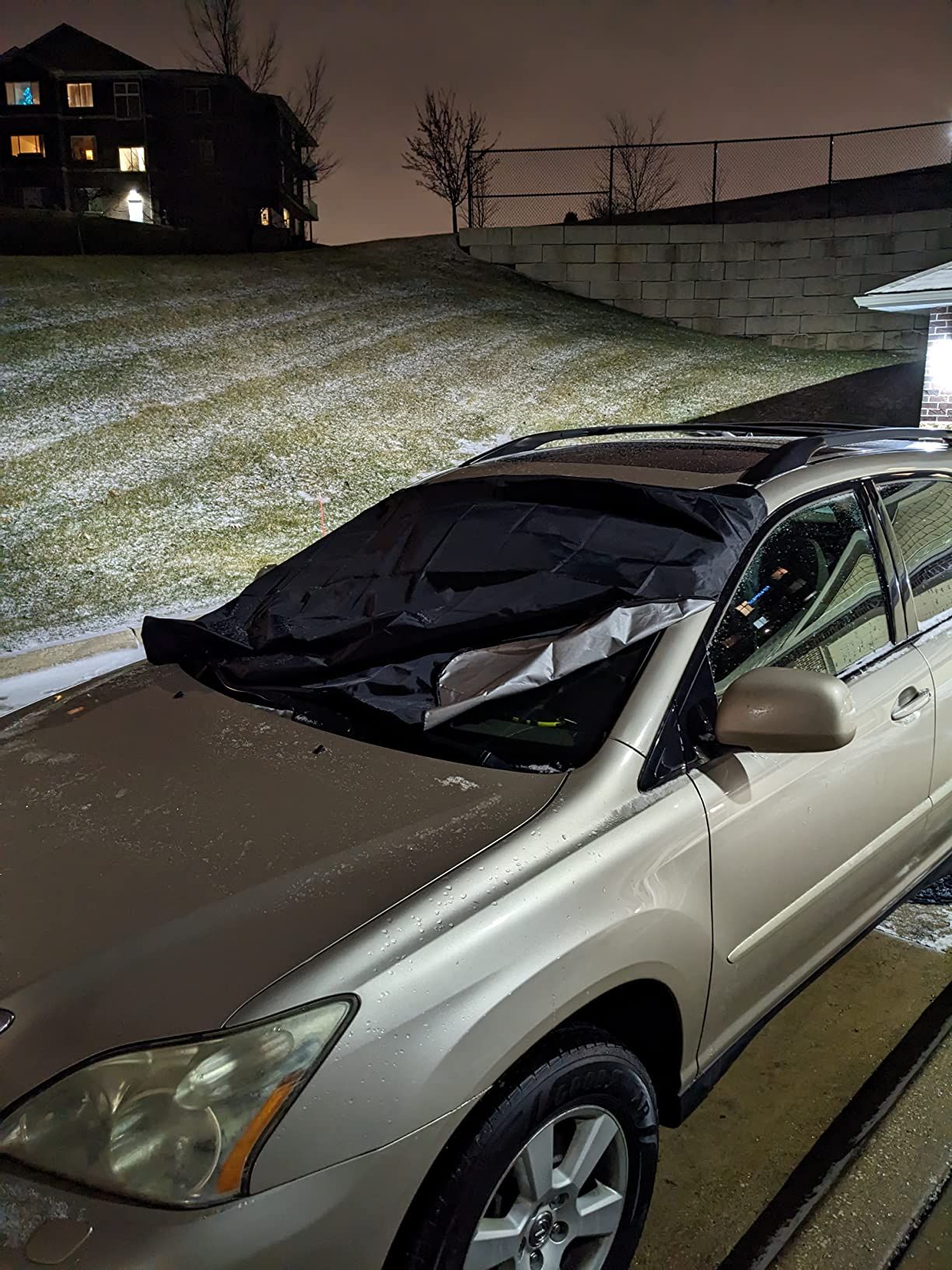 • Double-sided design: Silver for maximum reflection of sunlight and black for anti-freeze effect.